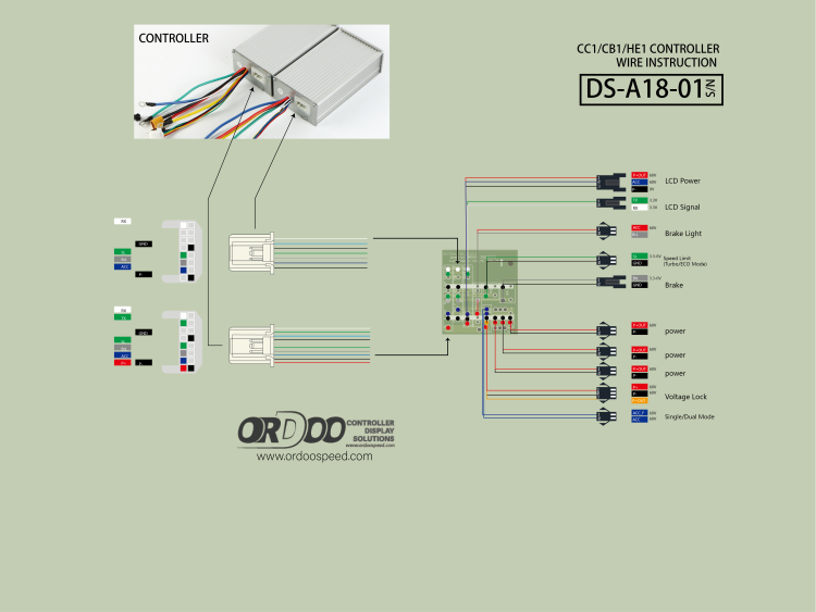 Set doua controllere 60V 45A OrdooSpeed pentru trotinetele electrice Halo Knight, Laotie ES19/ES18/ES18P/TI30, BOYUEDA sau Yume X11/Y11. Setul contine 2 bucati placa de baza cu cablu intermediar de comunicare si connectare pentru display TF-100 cu 5 pini. In cazul in care trotineta dvs are display QS-S4 cu connectare in 6 pini puteti folosii cablul intermediar existent de comunicare de pe trotineta dvs. pentru a connecta cele doua controllere.