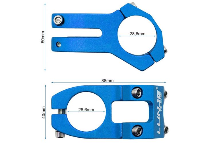 Lungimea de 88 mm, diametru de prindere ghidon de 31,8 mm iar diametru prindere furca de 28,6 mm.